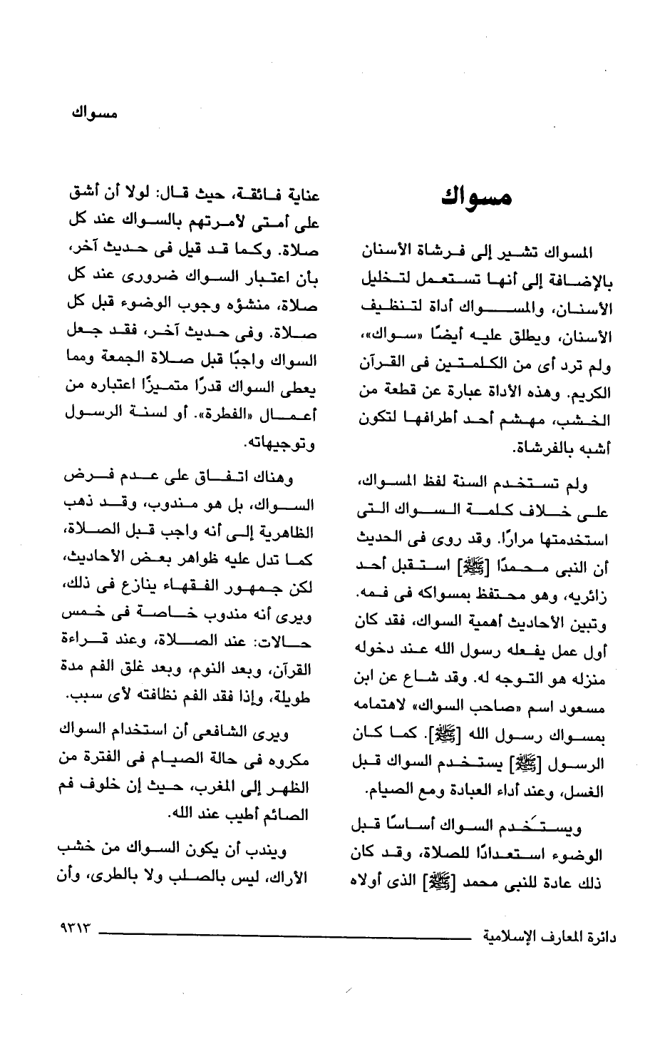 المسواك تشير إلى فرشاة الأسنان بالإضافة إلى أنها تستعمل لتخليل الأسنان، والمسواك أداة لتنظيف الأسنان، ويطلق عليه أيضًا "سواك"، ولم ترد أى من الكلمتين فى القرآن الكريم. وهذه الأداة عبارة عن قطعة من الخشب، مهشم أحد أطرافها لتكون أشبه بالفرشاة.