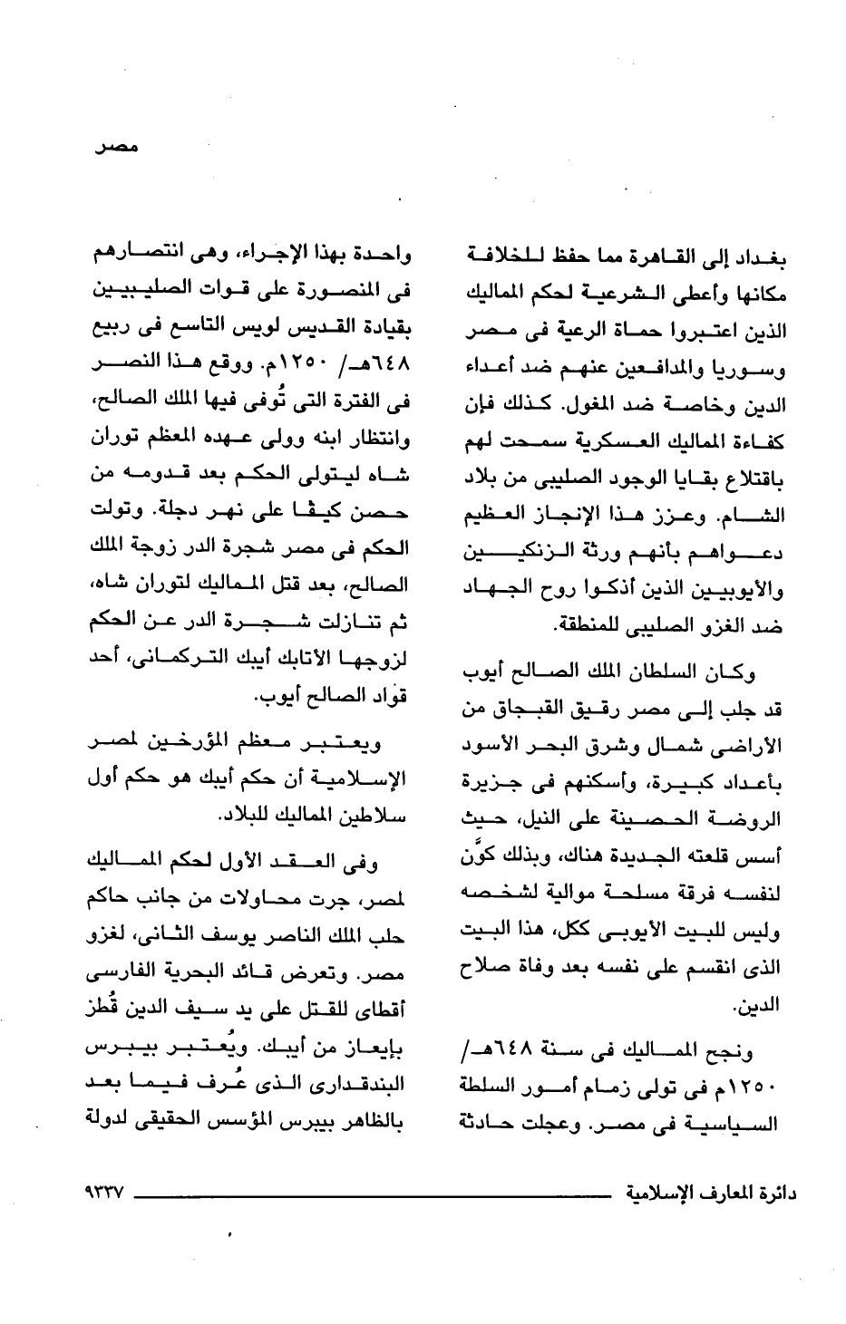 بغداد إلى القاهرة مما حفظ للخلافة مكانها وأعطى الشرعية لحكم المماليك الذين اعتبروا حماة الرعية فى مصر وسوريا والمدافعين عنهم ضد أعداء الدين وخاصة ضد المغول. كذلك فإن كفاءة المماليك العسكرية سمحت لهم باقتلاع بقايا الوجود الصليبى من بلاد الشام. وعزز هذا الإنجاز العظيم دعواهم بأنهم ورثة الزنكيين والأيوبيين الذين أذكوا روح الجهاد ضد الغزو الصليبى للمنطقة.