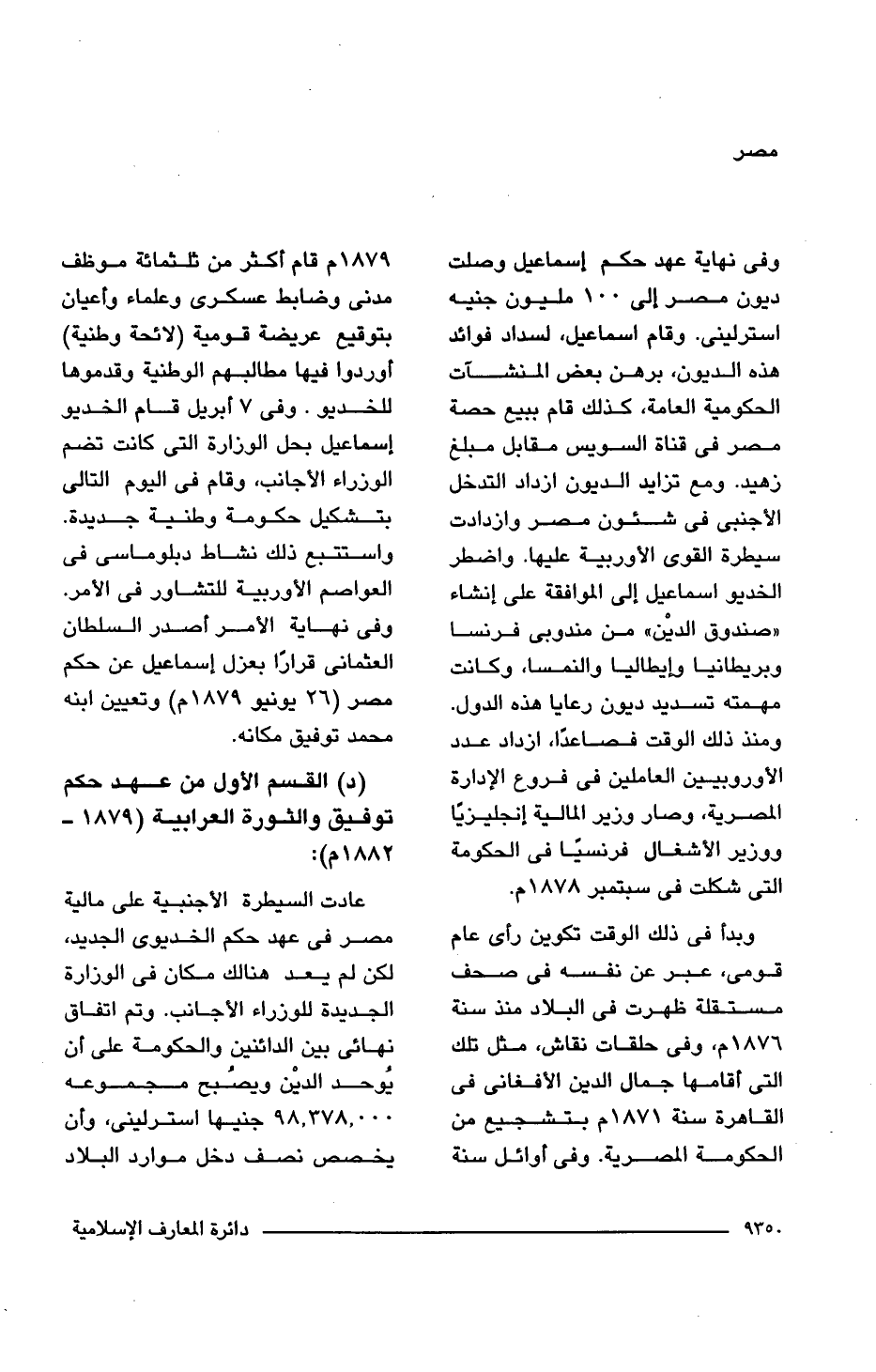 (د) القسم الأول من عهد حكم توفيق والثورة العرابية (1879 - 1882 م):