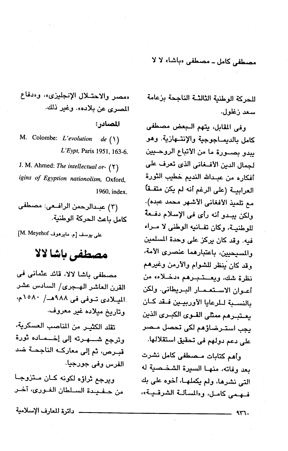 (2) J. M. Ahmed: The intellectual origins of Egyption nationolism, Oxford, 1960, index