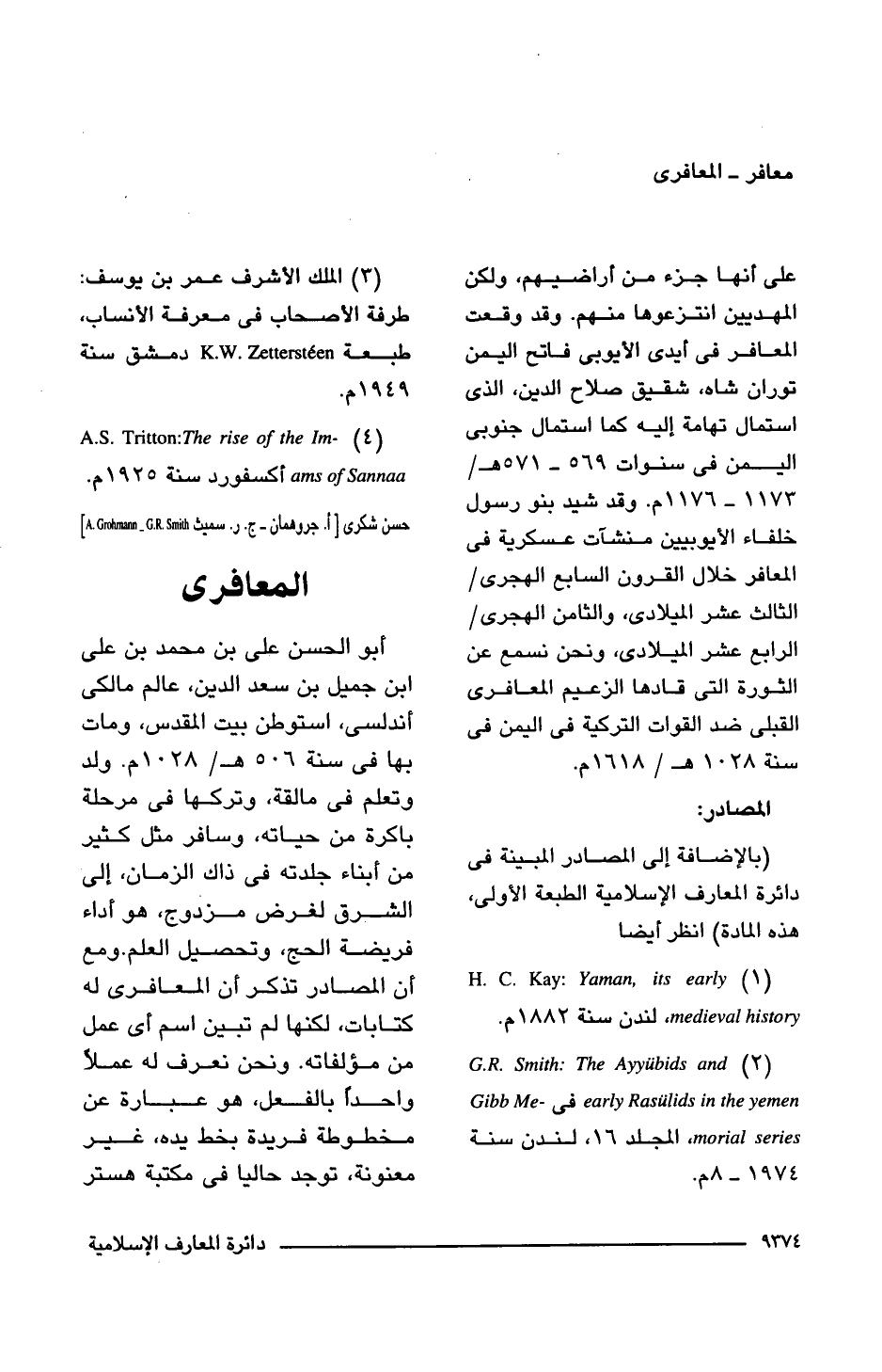 (2) G.R. Smith: The Ayyubids and early Rasulids in the yemen فى Gibb Memorial series، المجلد 16، لندن سنة 1974 - 8 م