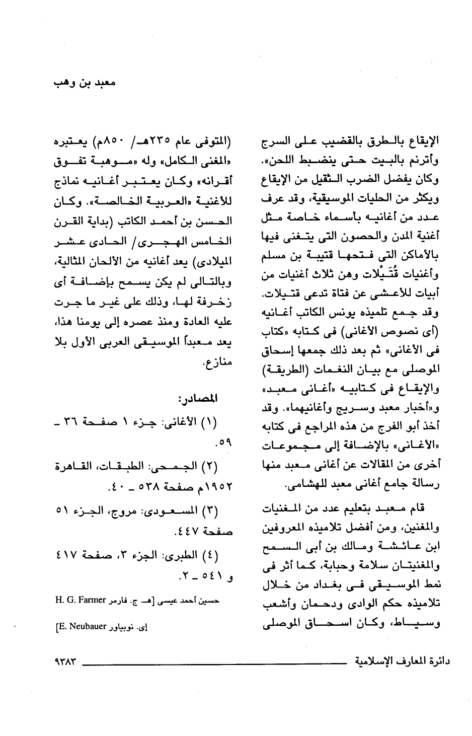 حسين أحمد عيسى [هـ. ج. فارمر H. G. Farmer، إى. نوبياور E. Neubauer]