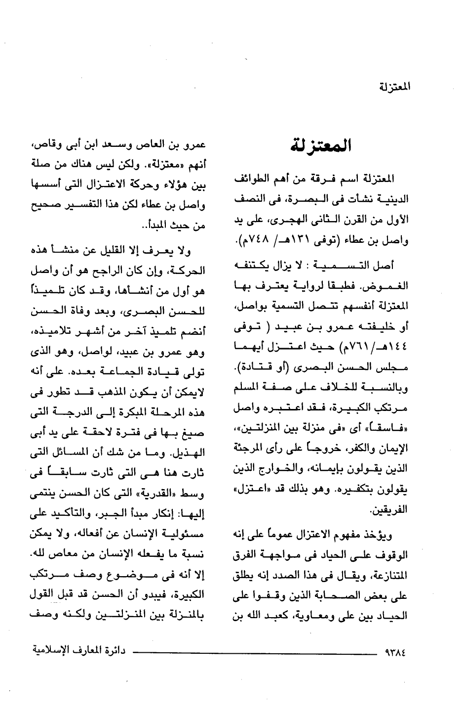 المعتزلة اسم فرقة من أهم الطوائف الدينية نشات فى البصرة، فى النصف الأول من القرن الثانى الهجرى، على يد واصل بن عطاء (توفى 131 هـ/ 748 م).