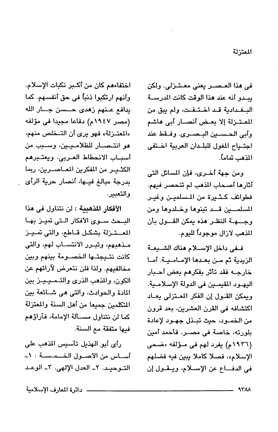 فى هذا العصر يعنى معتزلى. ولكن يبدو أنه عند هذا الوقت كانت المدرسة البغدادية قد اختفت، ولم يبق من المعتزلة إلا بعض أنصار أبى هاشم وأبى الحسين البصرى. وفقط عند اجتياح المغول للبلدان العربية اختفى المذهب تمامًا.