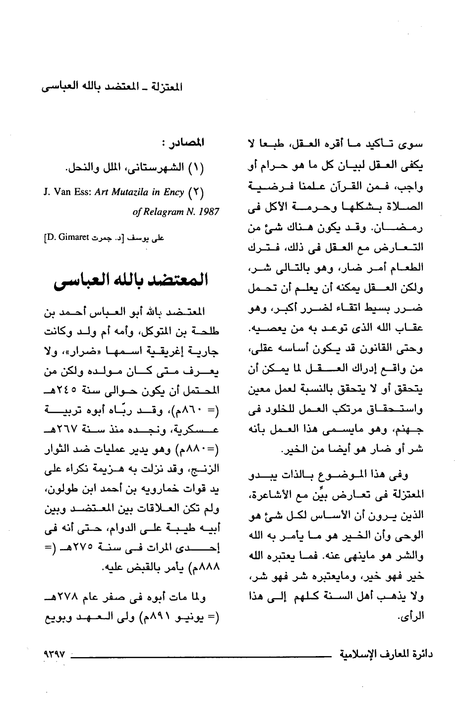 (2) J. Van Ess: Art Mutazila in Ency of Relagram N. 1987