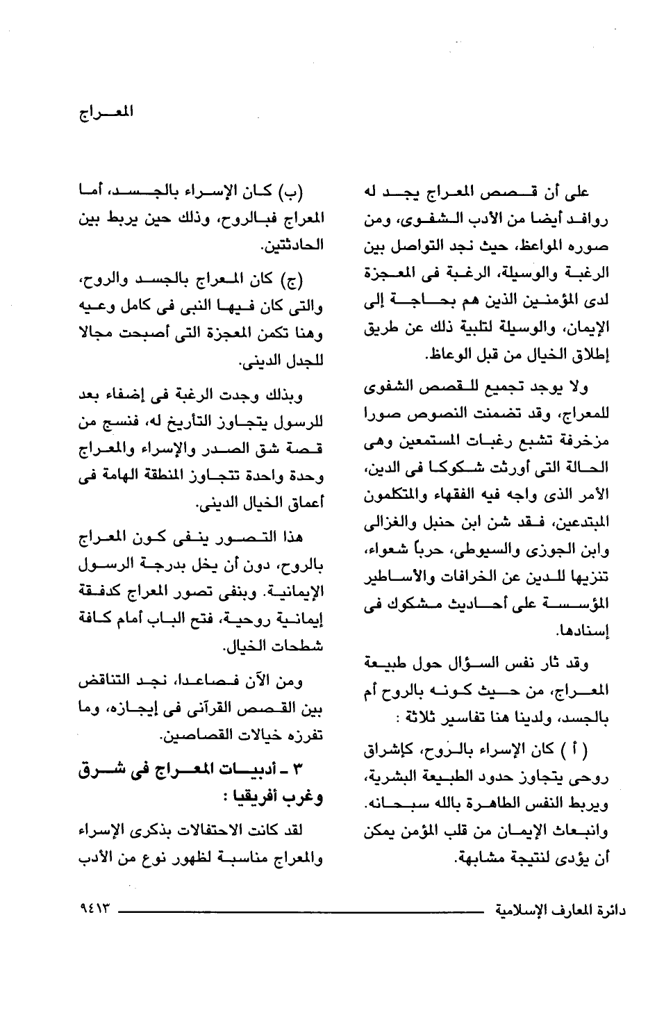 (أ) كان الإسراء بالروح، كإشراق روحى يتجاوز حدود الطبيعة البشرية، ويربط النفس الطاهرة باللَّه سبحانه. وانبعاث الإيمان من قلب المؤمن يمكن أن يؤدى لنتيجة مشابهة.