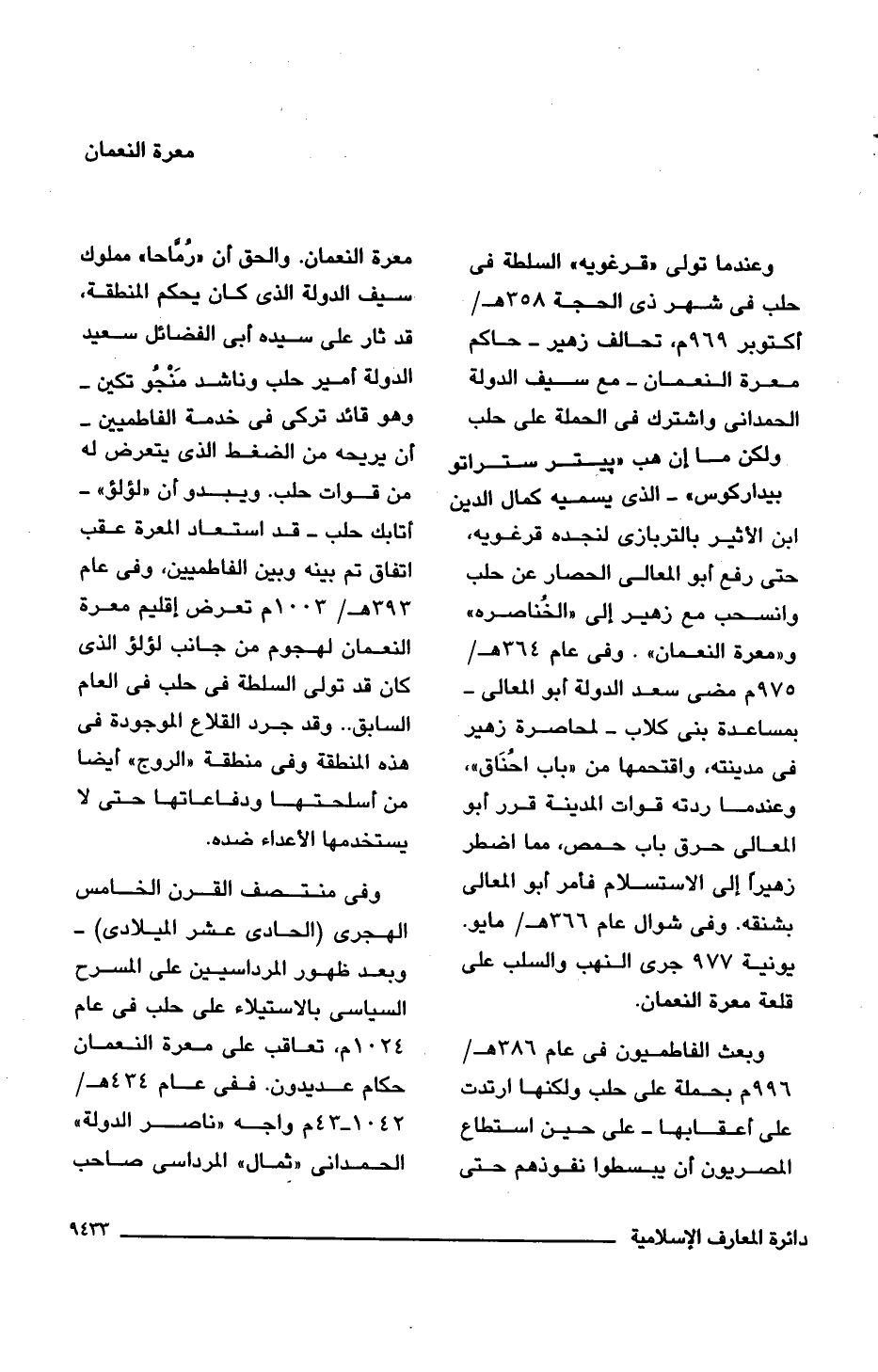 وبعث الفاطميون فى عام 386 هـ/ 996 م بحملة على حلب ولكنها ارتدت على أعقابها -على حين استطاع المصريون أن يبسطوا نفوذهم حتى معرة النعمان. والحق أن "رُمَّاحا" مملوك سيف الدولة الذى كان يحكم المنطقة، قد ثار على سيده أبى الفضائل سعيد الدولة أمير حلب وناشد مَنْجُو تكين -وهو قائد تركى فى خدمة الفاطميين- أن يريحه من الضغط الذى يتعرض له من قوات حلب. ويبدو أن "لؤلؤ" -أتابك حلب- قد استعاد المعرة عقب اتفاق تم بينه وبين الفاطميين، وفى عام 393 هـ/ 1003 م تعرض إقليم معرة النعمان لهجوم من جانب لؤلؤ الذى كان قد تولى السلطة فى حلب فى العام السابق. . وقد جرد القلاع الموجودة فى هذه المنطقة وفى منطقة "الروج" أيضا من أسلحتها ودفاعاتها حتى لا يستخدمها الأعداء ضده.