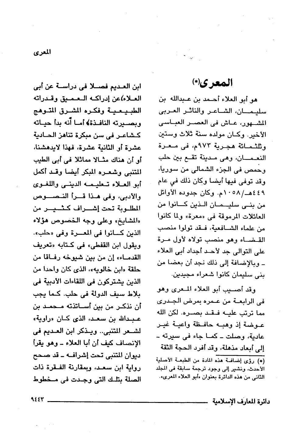 (*) رؤى إضافة هذه من الطبعة الأصلية الأحدث، ونشير إلى وجود ترجمة سابقة فى المجلد الثانى من هذه الدائرة بعنوان "أبو العلاء المعرى".