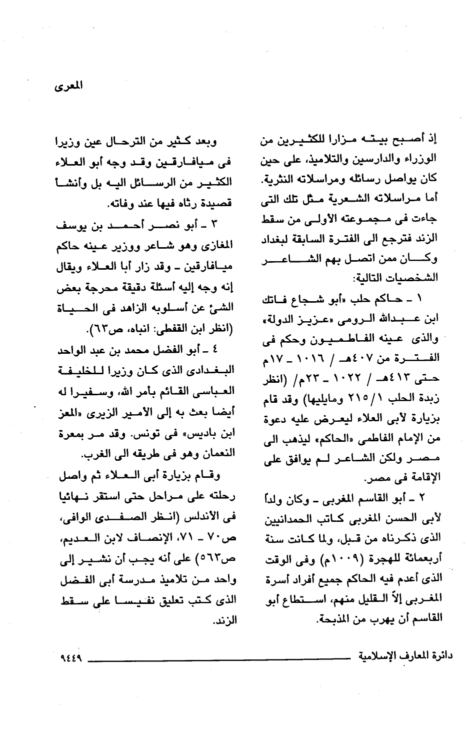 3 - أبو نصر أحمد بن يوسف المغازى وهو شاعر ووزير عينه حاكم ميافارقين -وقد زار أبا العلاء ويقال أنه وجه إليه أسئلة دقيقة محرجة بعض الشئ عن أسلوبه الزاهد فى الحياة (انظر ابن القفطى: انباه، ص 63).