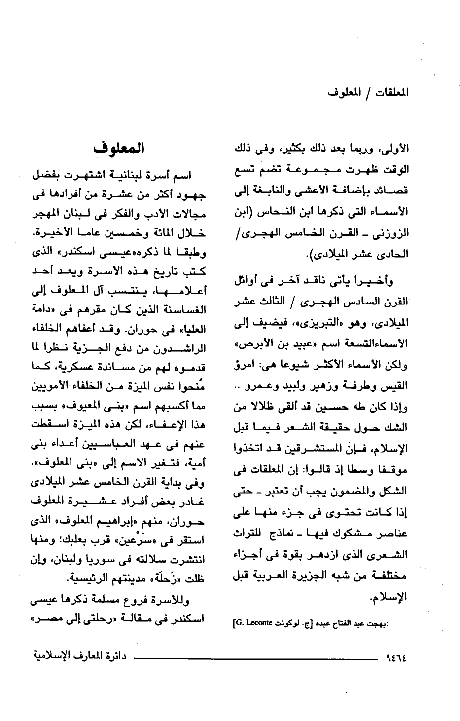 الأولى، وربما بعد ذلك بكثير، وفى ذلك الوقت ظهرت مجموعة تضم تسع قصائد بإضافة الأعشى والنابغة إلى الأسماء التى ذكرها ابن النحاس (ابن الزوزنى - القرن الخامس الهجرى/ الحادى عشر الميلادى).