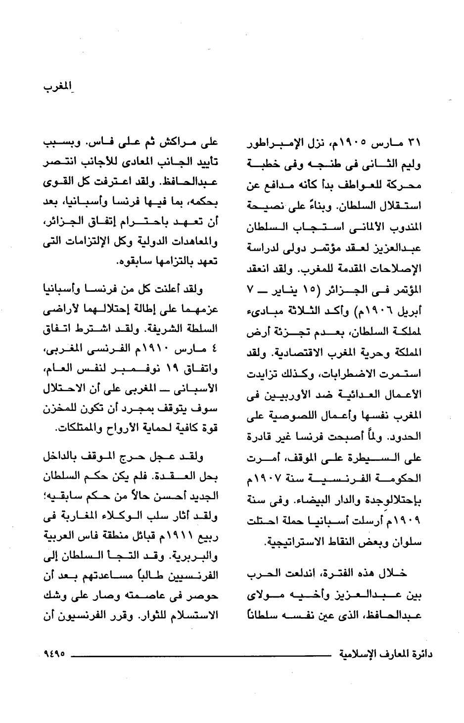 31 مارس 1905 م، نزل الإمبراطور وليم الثانى فى طنجه وفى خطبة محركة للعواطف بدأ كأنه مدافع عن استقلال السلطان. وبناءً على نصيحة المندوب الألمانى استجاب السلطان عبد العزيز لعقد مؤتمر دولى لدراسة الإصلاحات المقدمة للمغرب. ولقد انعقد المؤتمر فى الجزائر (15 يناير - 7 أبريل 1906 م) وأكد الثلاثة مبادئ لمملكة السلطان، بعدم تجزئة أرض المملكة وحرية المغرب الاقتصادية. ولقد استمرت الاضطرابات، وكذلك تزايدت الأعمال العدائية ضد الأوربيين فى المغرب نفسها وأعمال اللصوصية على الحدود. ولمَّا أصبحت فرنسا غير قادرة على السيطرة على الموقف، أمرت الحكومة الفرنسية سنة 1907 م بإحتلال وجدة والدار البيضاء. وفى سنة 1909 م أرسلت أسبانيا حملة احتلت سلوان وبعض النقاط الاستراتيجية.