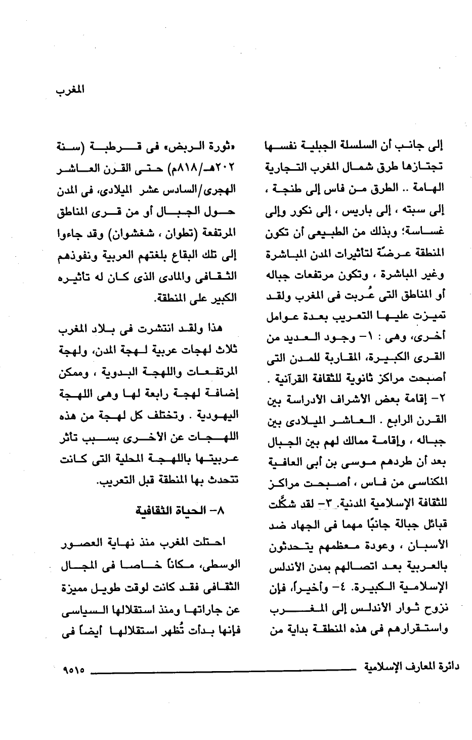 2 - إقامة بعض الأشراف الأدراسة بين القرن الرابع. العاشر الميلادى بين جباله، وإقامة ممالك لهم بين الجبال بعد أن طردهم موسى بن أبى العافية المكناسى من فاس، أصبحت مراكز للثقافة الإسلامية المدنية.