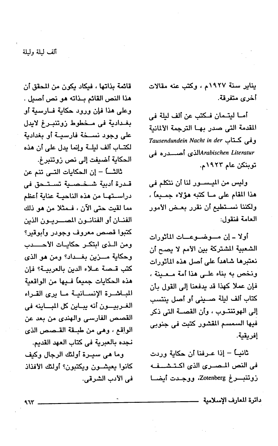 أما ليتمان فكتب عن ألف ليلة فى المقدمة التى صدر بها الترجمة الألمانية وفي كتاب Tausendundein Nacht in der Arabischen Literatur الذى أصدر , فى توبنكن عام 1923 م.