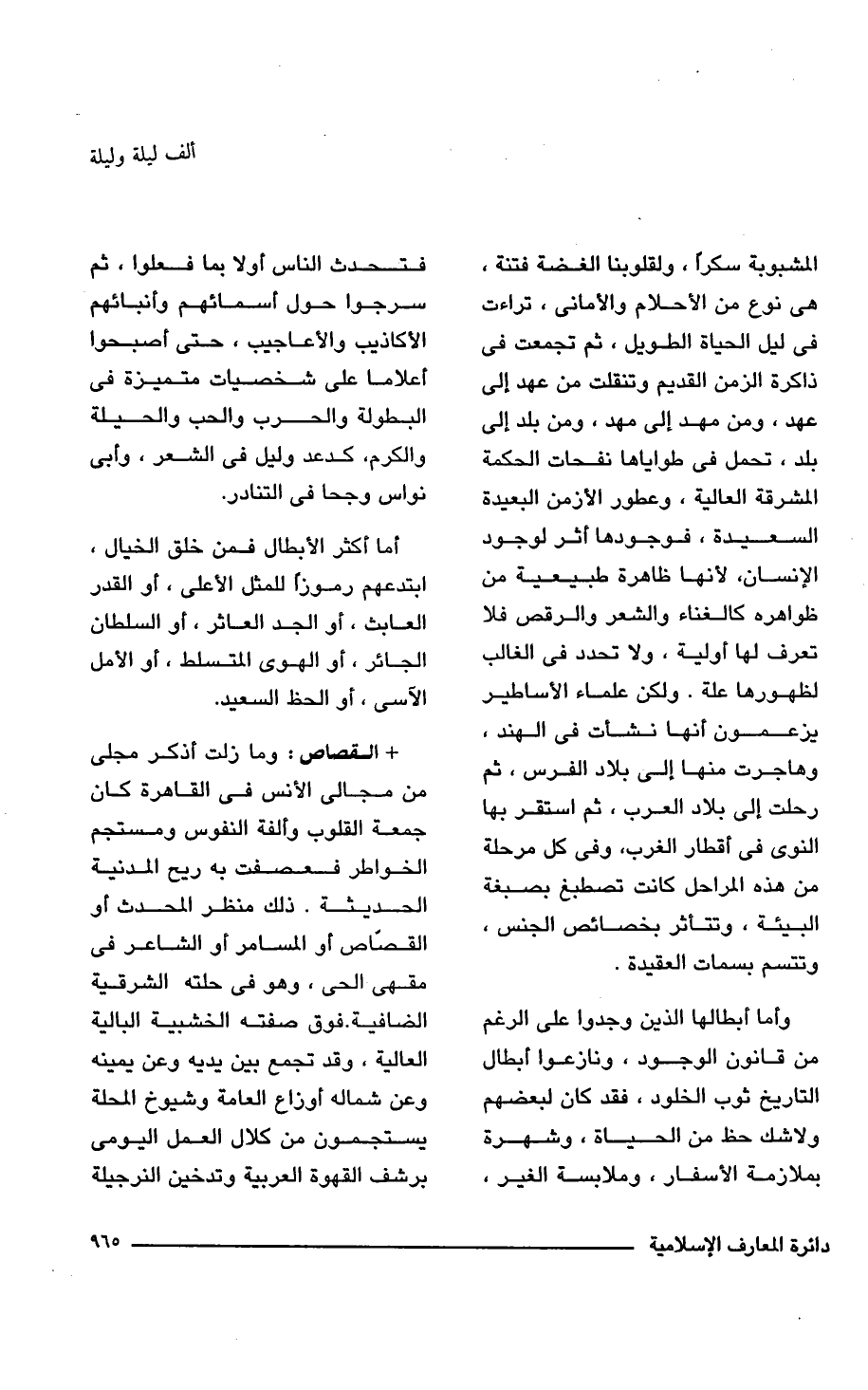 + القصاص: وما زلت أذكر مجلى من مجالى الأنس فى القاهرة كان جمعة القلوب وألفة النفوس ومستجم الخواطر فعصفت به ريح المدنية الحديثة. ذلك منظر المحدث أو القصَاص أو المسامر أو الشاعر فى مقهى الحى، وهو فى حلته الشرقية الضافية. فوق صفته الخشبية البالية العالية، وقد تجمع بين يديه وعن يمينه وعن شماله أوزاع العاهة وشيوخ المحلة يستجمون من كلال العمل اليومى برشف القهوة العربية وتدخين النرجيلة oilc