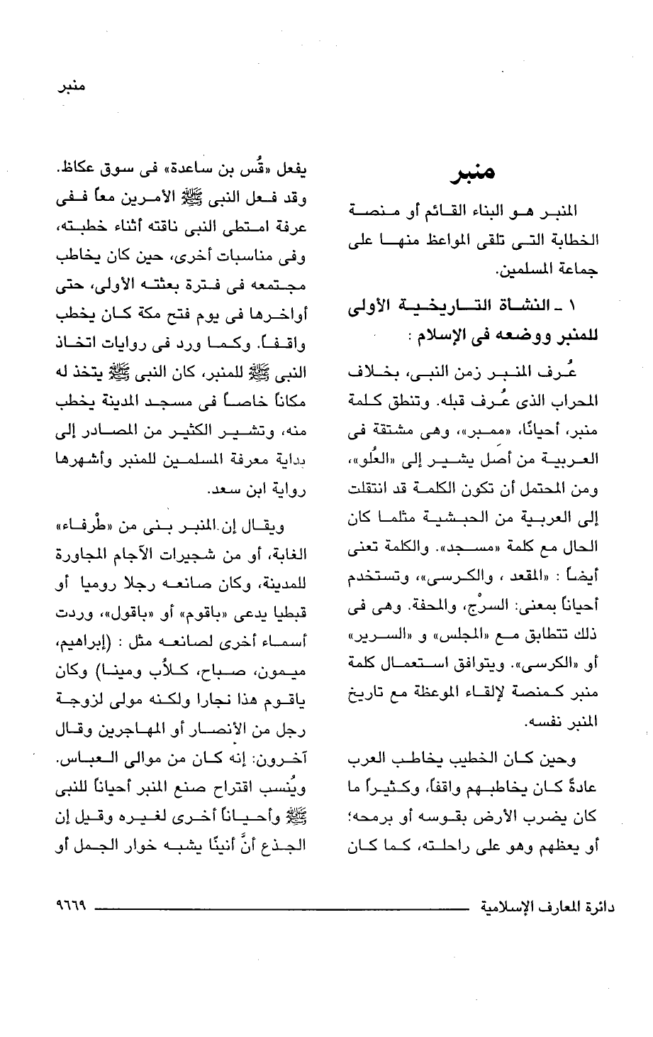 1 - النشأة التاريخية الأولى للمنبر ووضعه فى الإسلام: