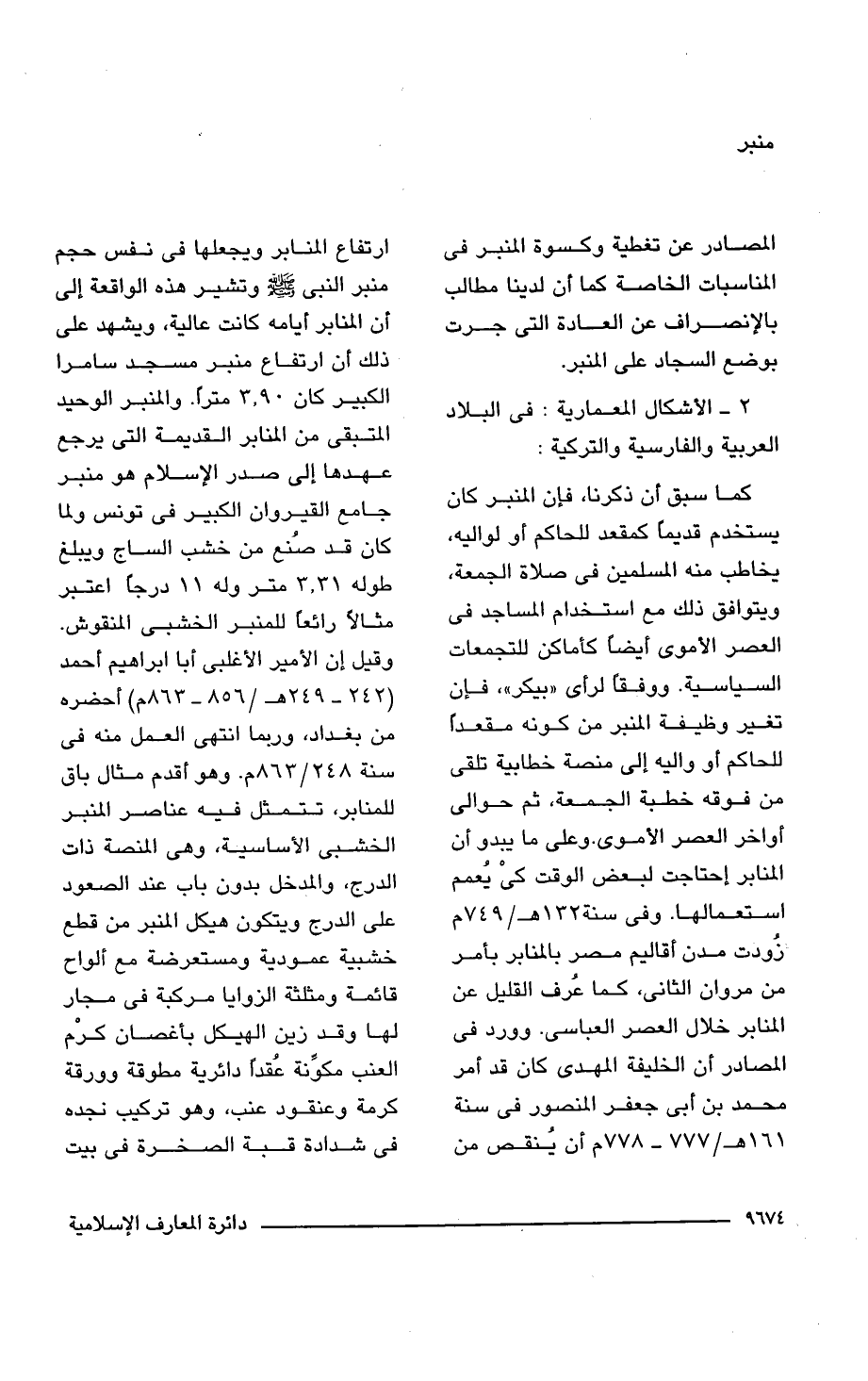 المصادر عن تغطية وكسوة المنبر فى المناسبات الخاصة كما أن لدينا مطالب بالإنصراف عن العادة التى جرت بوضع السجاد على المنبر.
