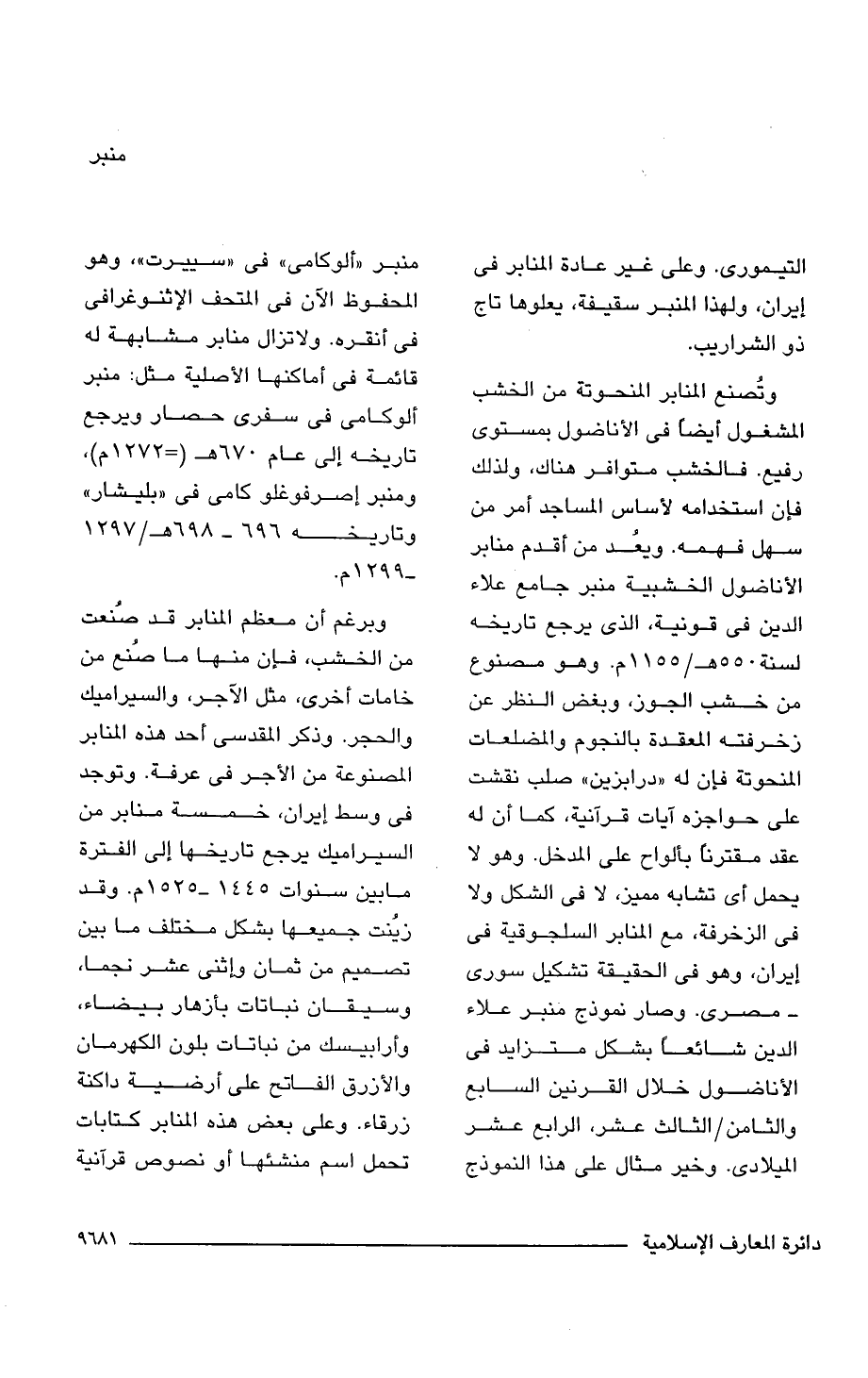 التيمورى. وعلى غير عادة المنابر فى إيران، ولهذا المنبر سقيفة، يعلوها تاج ذو الشراريب.