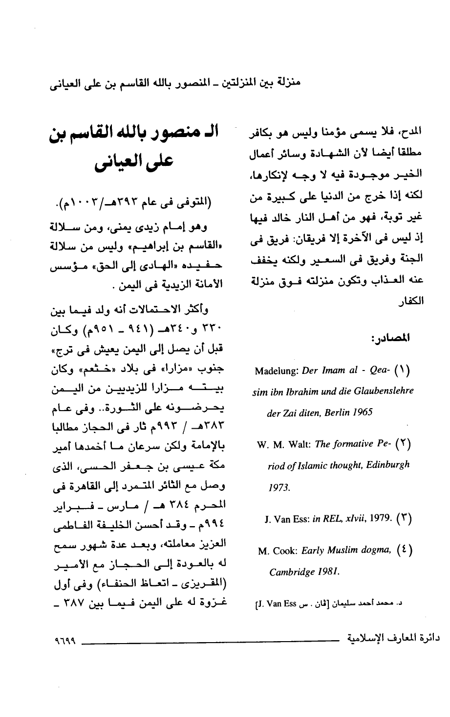 (1) Madelung: Der Imam al - Qeasim ibn Ibrahim and die Glaubenslehre der Zai diten, Berlin 1965
