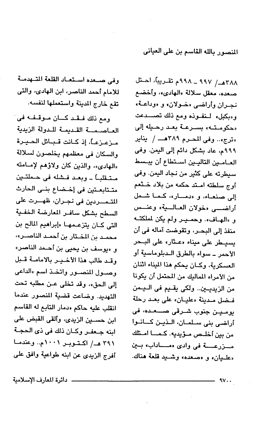 288 هـ/ 997 - 998 م تقريبًا، احتل صعده، معقل سلالة "الهادى" وأخضع نجران وأراضى "خولان" و"وداعة" و"بكبل" لنفوذه ومع ذلك تصدعت "حكومته" بسرعة بعد رحيله إلى "ترج". . وفى المحرم 389 هـ/ يناير 999 م، عاد بشكل دائم إلى اليمن. وفى العامين التاليين استطاع أن يبسط سيطرته على كثير من نجاد اليمن. وفى أوج سلطته امتد حكمه من بلاد خثعم إلى صنعاء، و"دمار"، كما شمل أراضى "خولان العالية" وعنس و"الهاف". وحمير ولم يكن لمملكته منفذ إلى البحر، وتقوضت آماله فى أن يسيطر على ميناء "عثار" على البحر الأحمر - سواء بالطرق الدبلوماسية أو العسكرية، وكان يحكم هذا الميناء اثنان من الأمراء المماليك من المحتمل أن يكونا من الزيديين. . ولكى يقيم فى اليمن فضل مدينة "عليان" على بعد رحلة يومين جنوب شرقى صعده، فى أراضى بنى سلمان، الذين كانوا من بين أخلص مؤيديه. كما امتلك مزرعة فى وادى "ماداب" بين "عليان" و"صعده" وشيد قلعة هناك. وفى صعده استعماد القلعة المتهدمة للامام أحمد الناصر، ابن الهادى، والتى تقع خارج المدينة واستعملها لنفسه.