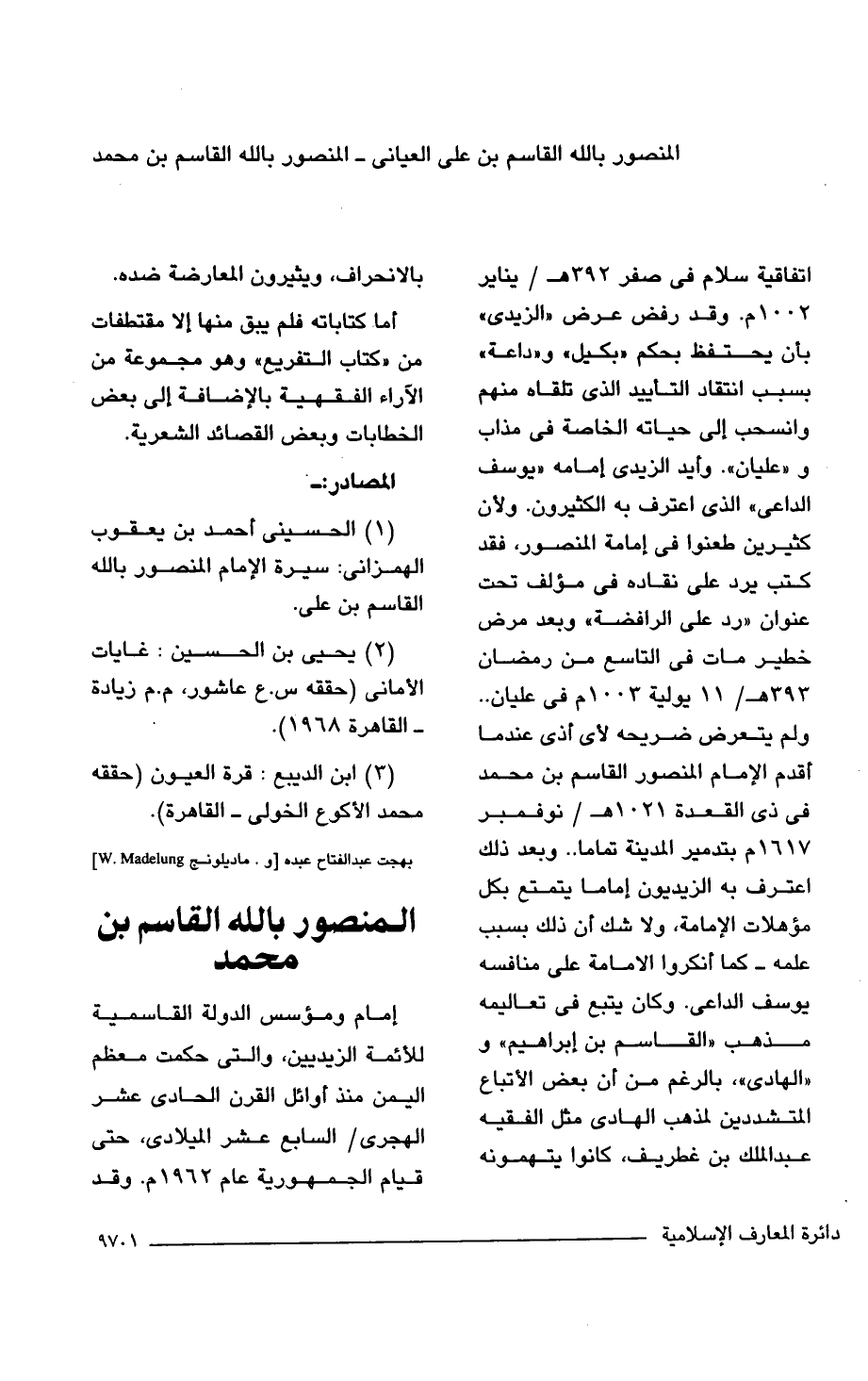 (1) الحسينى أحمد بن يعقوب الهمزانى: سيرة الإمام المنصور باللَّه القاسم بن على.