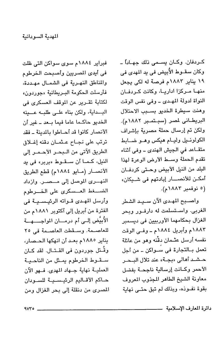 كردفان. وكان يسمى ذلك جهادًا -وكان سقوط الأُبيض فى يد المهدى فى 19 يناير 1883 م فرصة له لكى يجعل منها مركزا اداريا، وكانت كردفان النواة لدولة المهدى- وفى نفس الوقت وهنت سيطرة الخديو بسبب الاحتلال البريطانى لمصر (سبتمبر 1882 م). ولكن تم إرسال حملة مصرية بإشراف الكولونيل وليام هيكس وهو ضابط متقاعد فى الجيش الهندى -وفى أثناء تقدم الحملة وسط الأرض الوعرة لهذا البلد من النيل الأبيض وحتى كردفان أمكن للأنصار إبادتهم فى شيكان" (5 نوفمبر 1883 م).