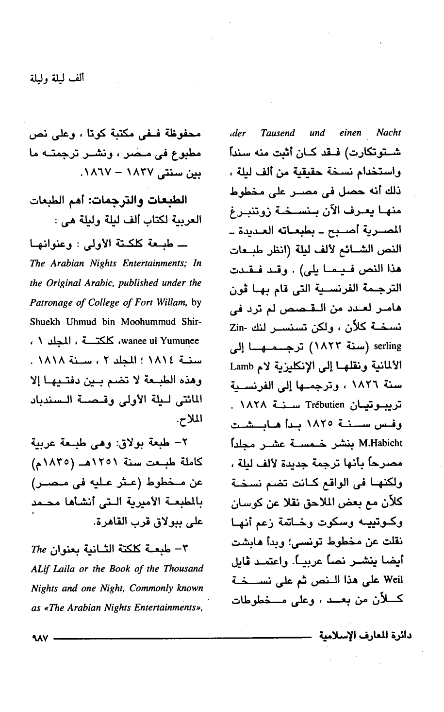 الطبعات والترجمات: أهم الطبعات العربية لكتاب ألف ليلة وليلة هى: