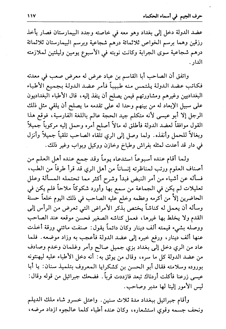 وأقام جبرائيل ببغداد مدة ثلاث سنين واعتل خشروشاه ملك الديلم ونحف جسمه وقوي استشعاره وَكَانَ عنده أطباء كلما عالوه ازداد مرضه