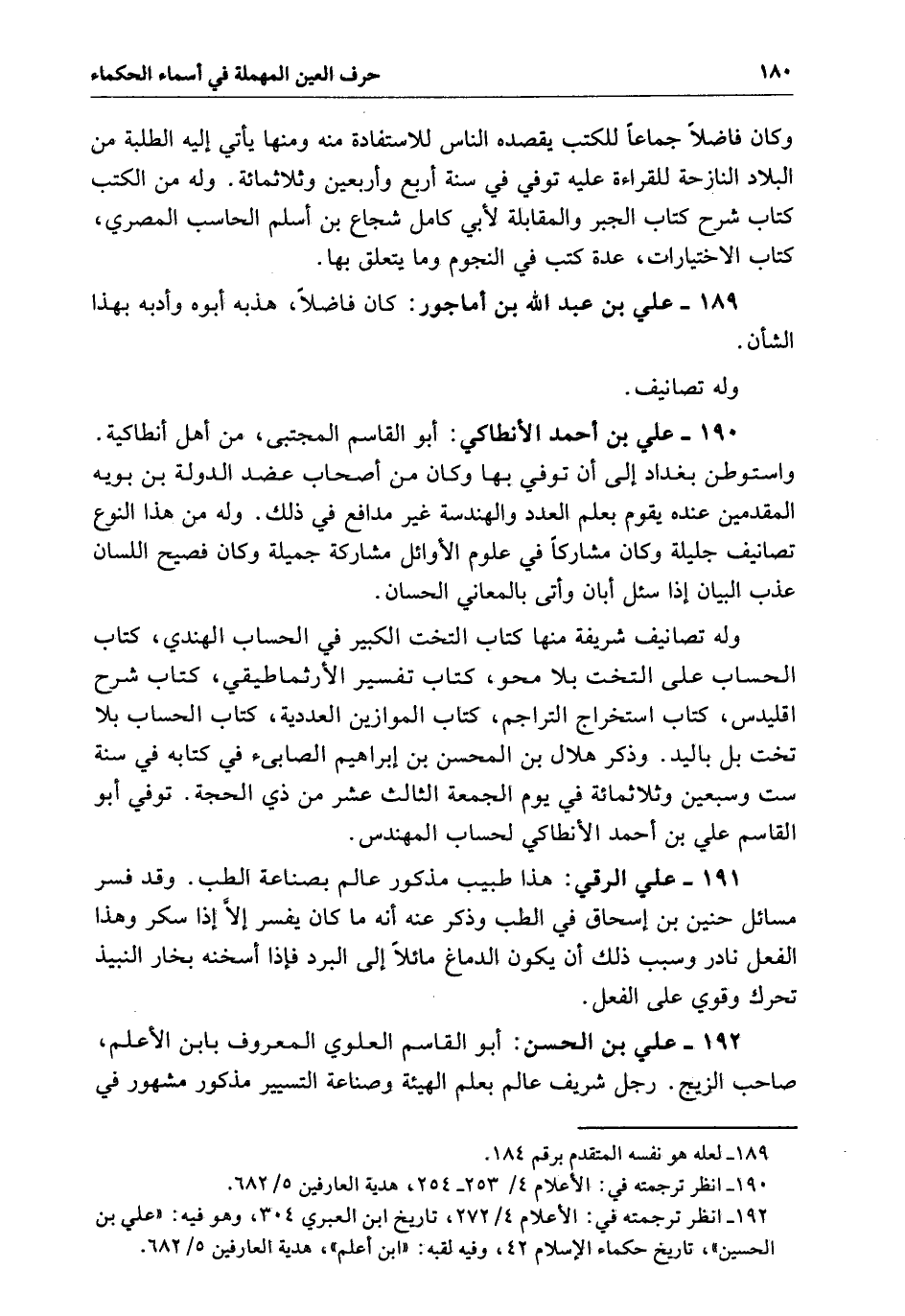 وَكَانَ فاضلاً جماعاً للكتب يقصده الناس للاستفادة منه ومنها يأتي إِلَيْهِ الطلبة من البلاد النازحة للقراءة عَلَيْهِ توفي فِي سنة أربع وأربعين وثلاثمائة وَلَهُ من الكتب. كتاب شرح كتاب الجبر والمقابلة لأبي كامل شجاع بن أسلم الحاسب المصري. كتاب الاختيارات. عدة كتب فِي النجوم وَمَا يتعلق بِهَا.