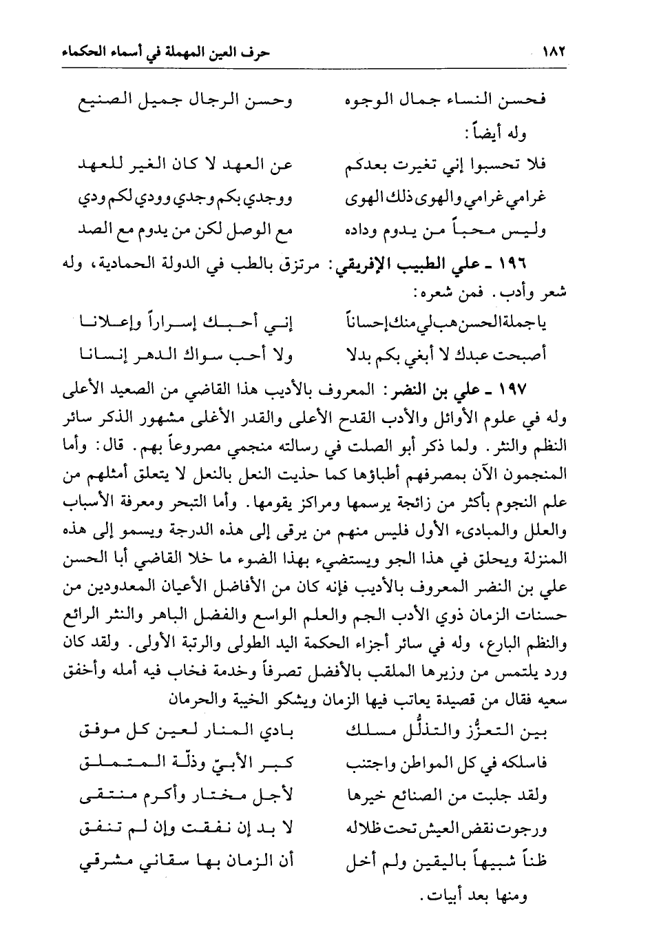 علي الطبيب الإفريقي مرتزق بالطب فِي الدولة الحمادية وَلَهُ شعر وأدب فمن شعره: