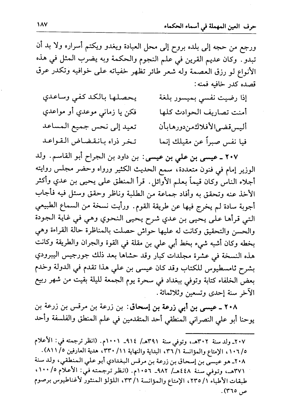 عيسى بن أبي زرعة بن إسحاق بن زرعة بن مرقس بن زرعة بن يوحنا أبو علي النصراني المنطقي أحد المتقدمين فِي علم المنطق والفلسفة وأحد