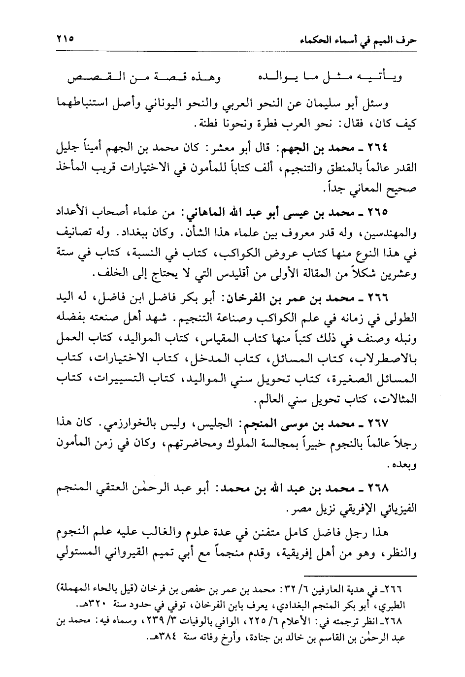 محمد بن الجهم قال أبو معشر كَانَ محمد بن الجهم أميناً جليل القدر عالماً بالمنطق والتنجيم ألف كتاباً للمأمون فِي الاختيارات قريب المأخذ صحيح المعاني جداً.
