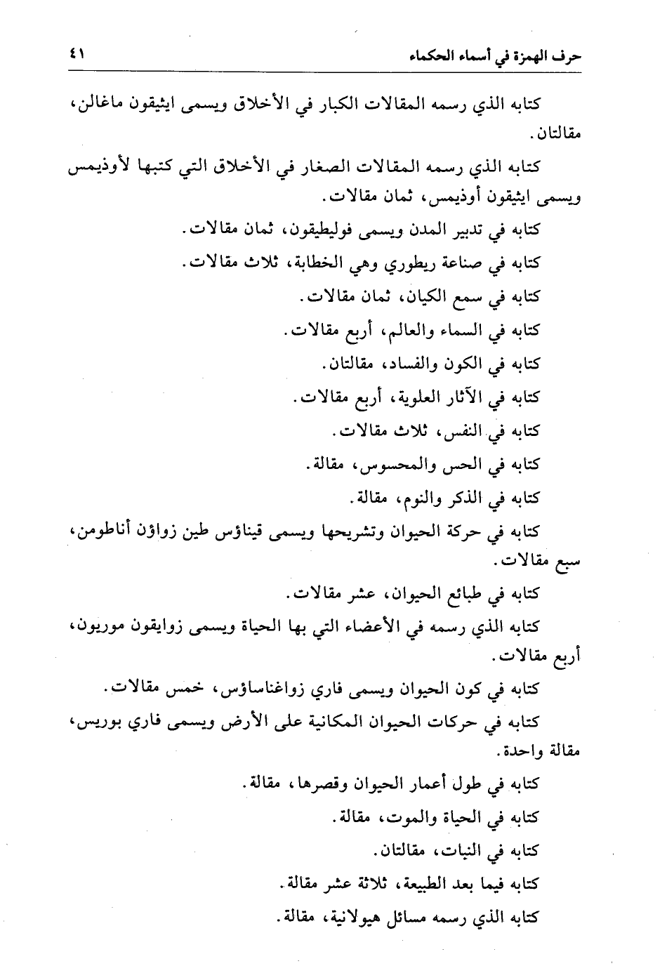 كتابه فِيما بعد الطبيعة ثلاثة عشر مقالة.