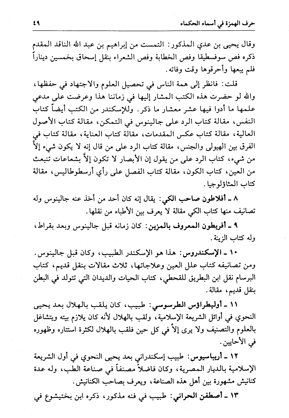 الإسكندر هَذَا هو الإسكندر الطبيب وَكَانَ قبل جالينوس ومن تصانيفه كتاب علل العين وعلاجاتها ثلاث مقالات ينقل قديم كتاب البرسام نقل ابن البطريق للقحطمي كتاب الحيات والديدان الَّتِي تتولد فِي البطن بنقل قدم مقالة.