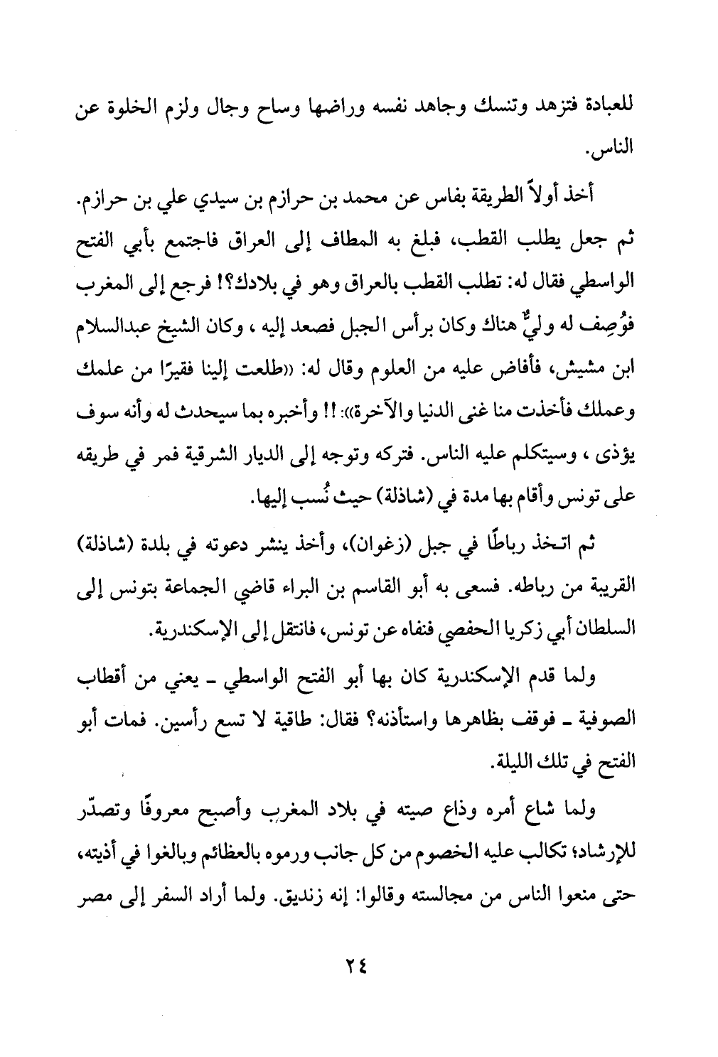 على تونس وأقام بها مدة في (شاذلة) حيث نسب إليهاه