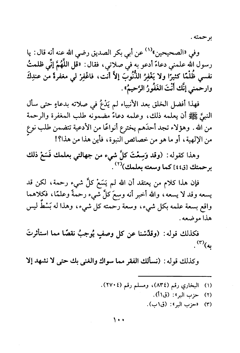 فهذا أفضل الخلق بعد الأنبياء لم يَدْعُ في صلاته بدعاءٍ حتى سأل النبيَّ صلى الله عليه وسلم أن يعلمه ذلك وعلمه دعاءً مضمونه طلب المغفرة والرحمة من الله وهؤلاء تجد أحدَهم يخترع أنواعًا من الأدعية تتضمن طلب نوعٍ من الإلهية أو ما هو من خصائص النبوة فأين هذا من هذا؟!