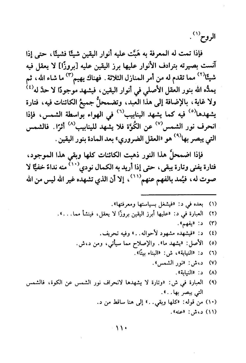 فإذا اضمحلَّ هذا النور ذهبت الكائنات كلها وبقي هذا الموجود فتارة يفنى وتارة يبقى حتى إذا أريد له الكمال نودي منه نداءً خفيًّا لا صوت له فيُمد بالفهم عنهم إلا أن الذي تشهده غير الله ليس من الله