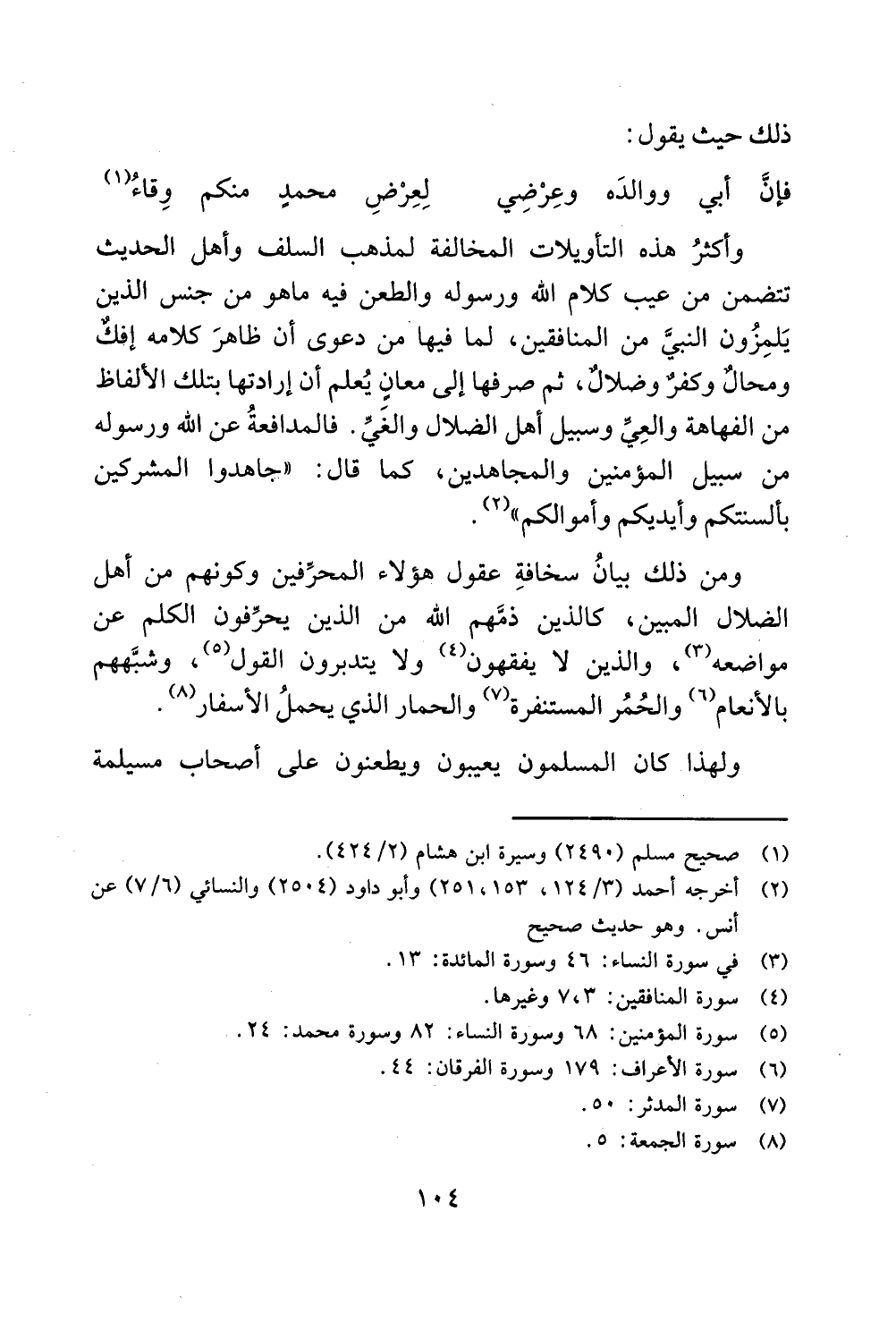 فان أبي ووالده وعرضي لعرض محمد منكم وقاء (1)