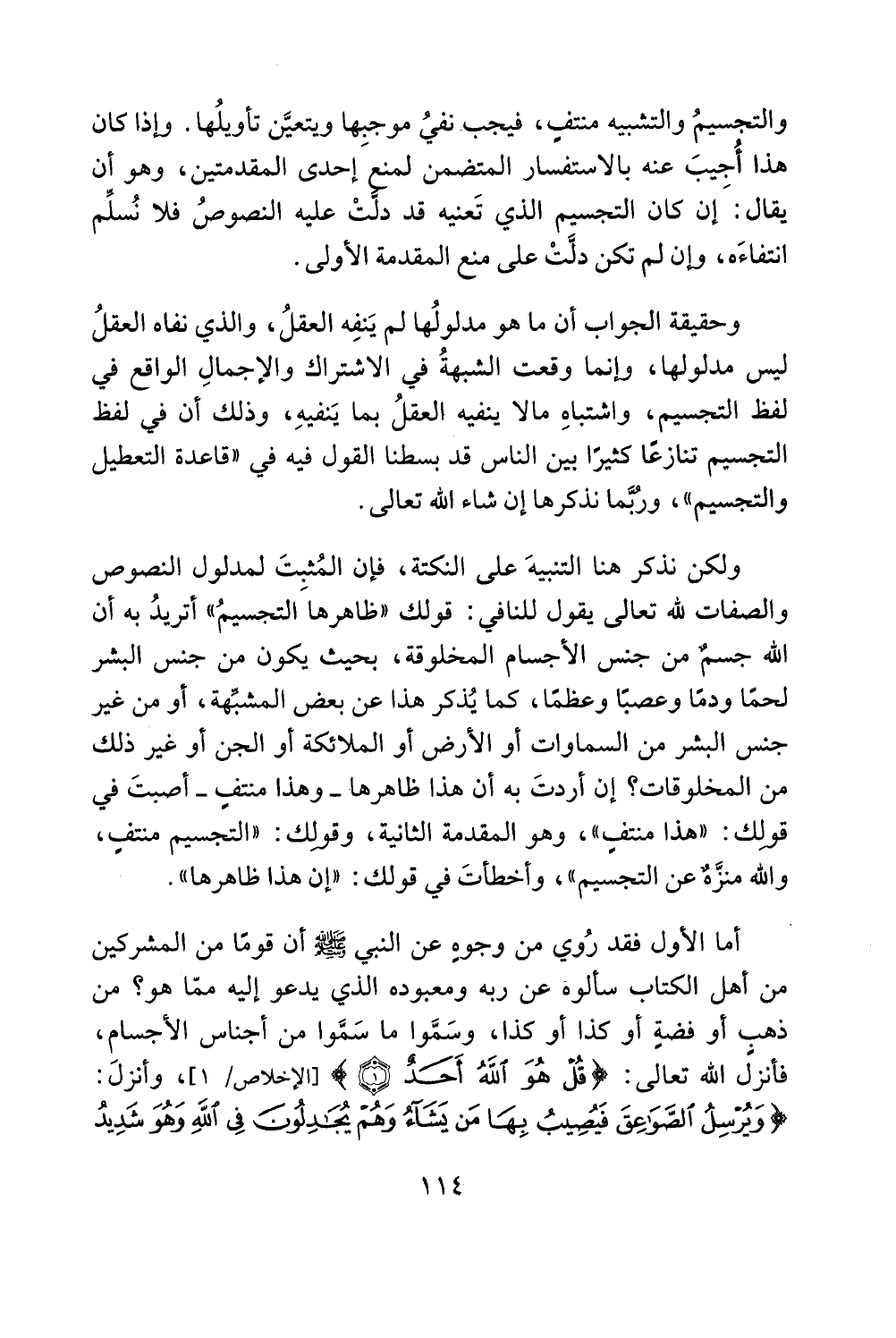 والله منزب! عن التجسيم "، وأخطأت في قولك: " إن هذا ظاهرها".