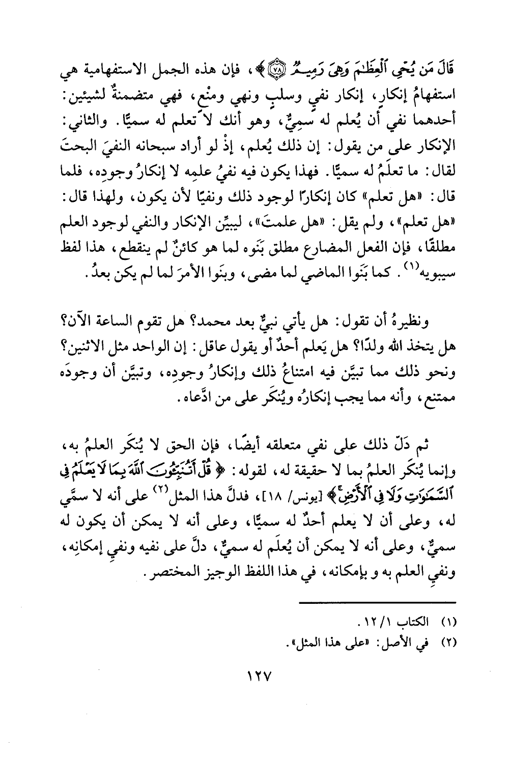 ونفي العلم به و بإمكانه، في هذا اللفظ الوجيز المختصر.