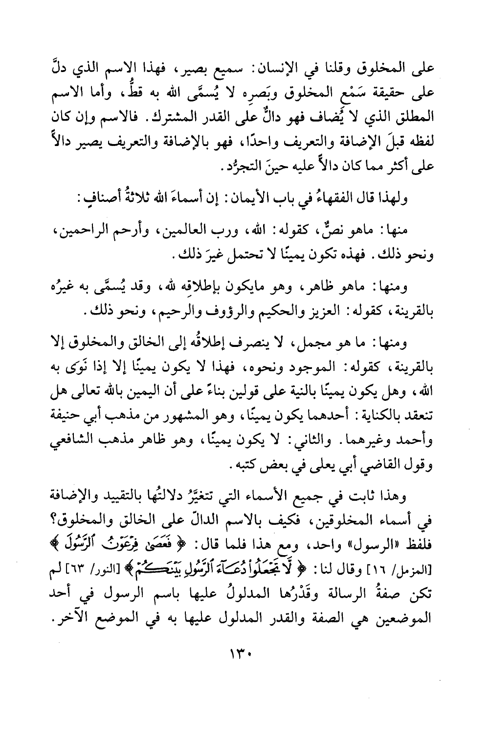 ولهذا قال الفقهاء في باب الايمان: إن أسماء الله ثلاثة أصناف: