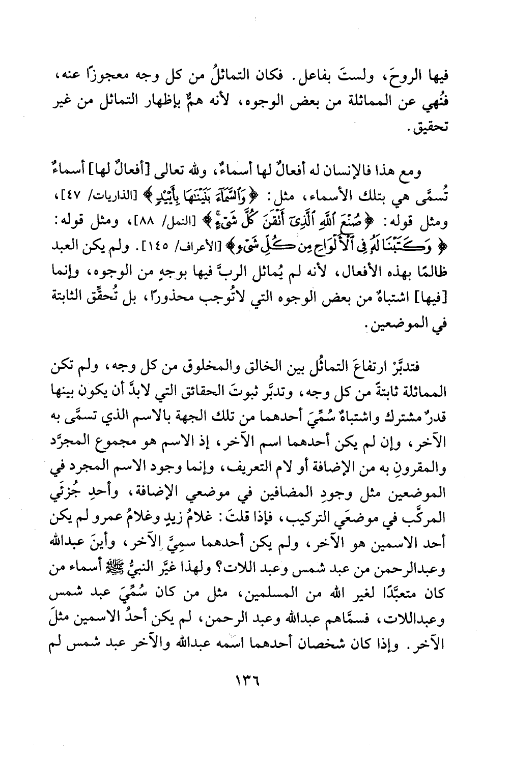 فتدبر ارتفاع التماثل بين الخالق والمخلوق من كل وجه، ولم تكن