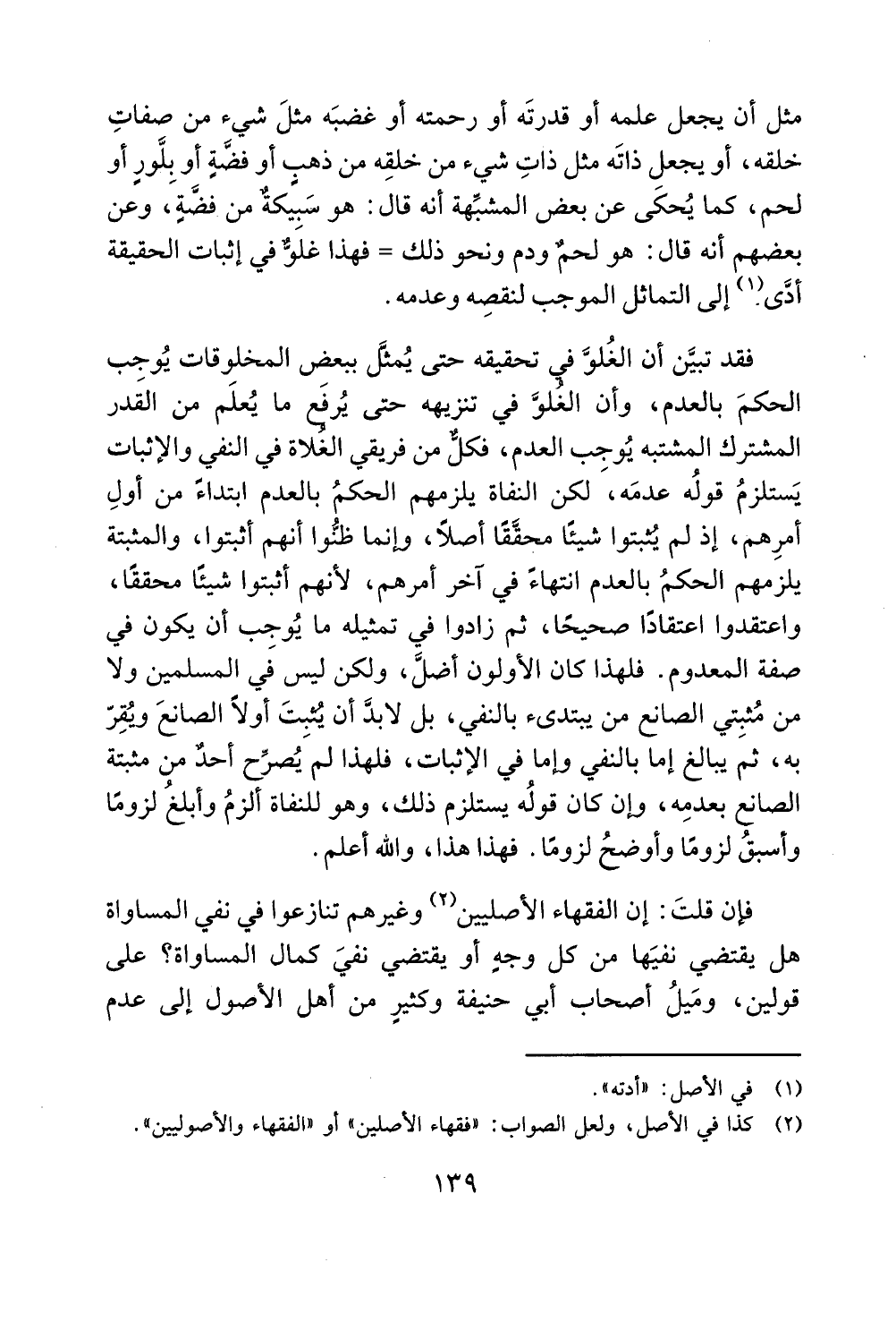 ف! ن قلت: إن الفقهاء الاصليين (2) وغيرهم تنازعوا في نفي المساواة