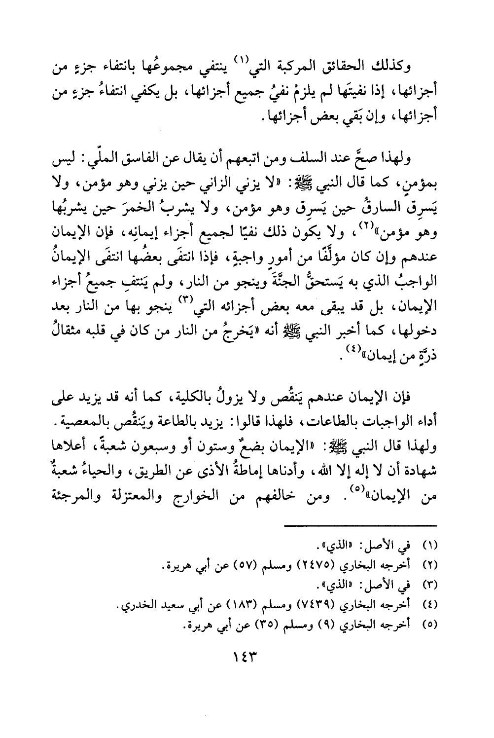 من الايمان " (5). ومن خالفهم من الخوارح والمعنزلة والمرجئة