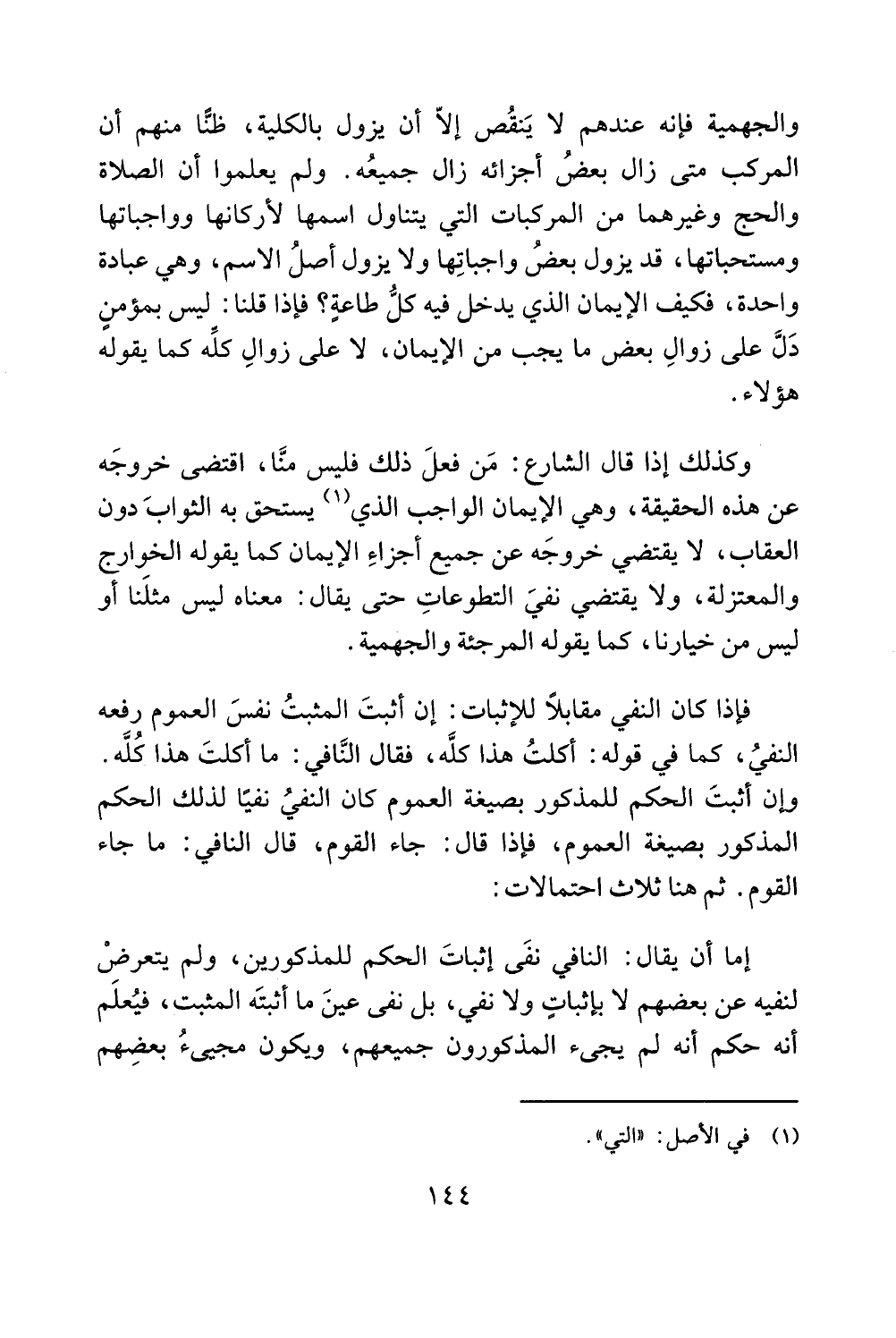 عن هذه الحقيقة، وهي الايمان الواجب الذي (1) يستحق به الثواب دون