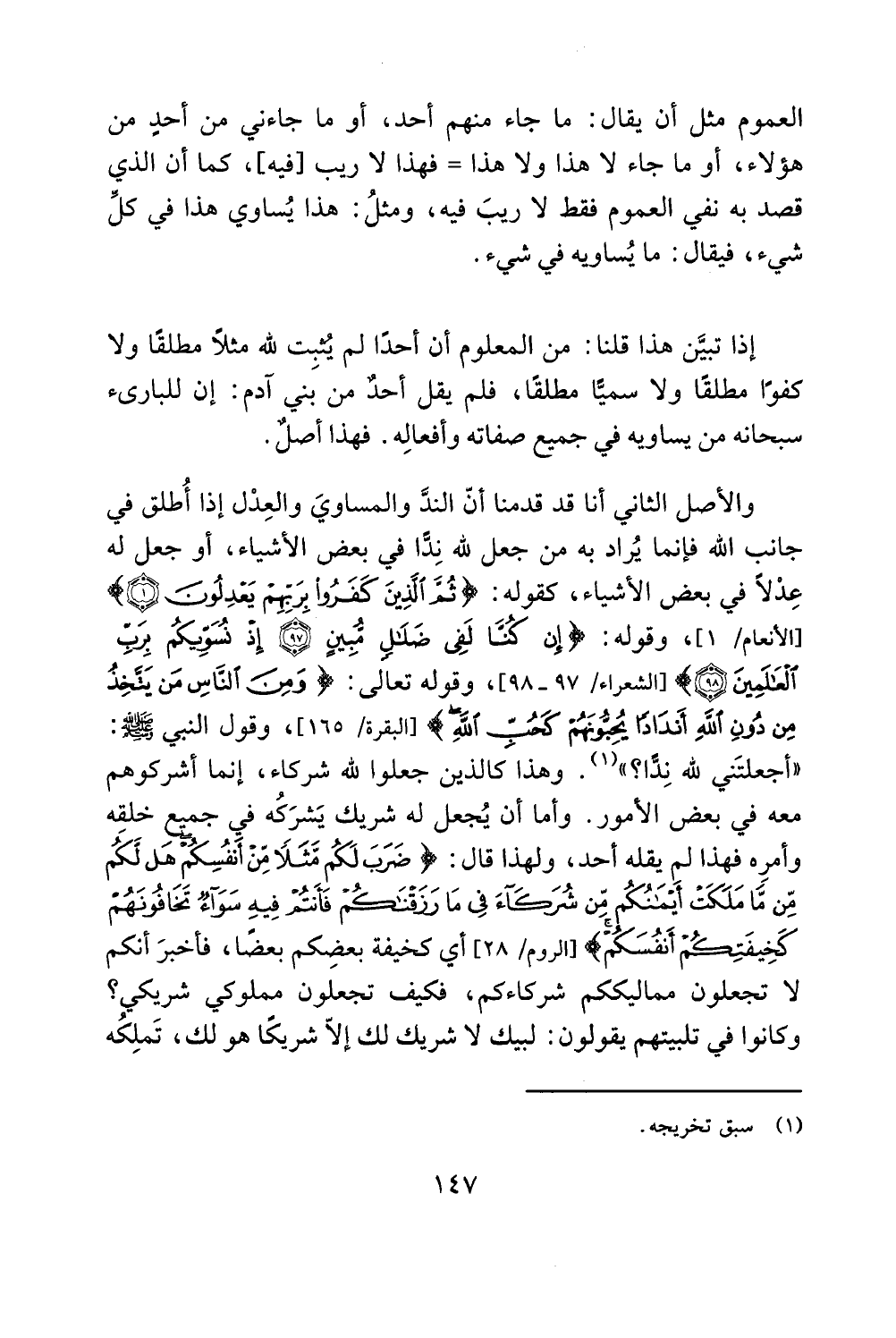 من دون ألله أنداد3! وثتم ممصف الله > 1 البقرة/ 165]، وقول النبي ع! يم: