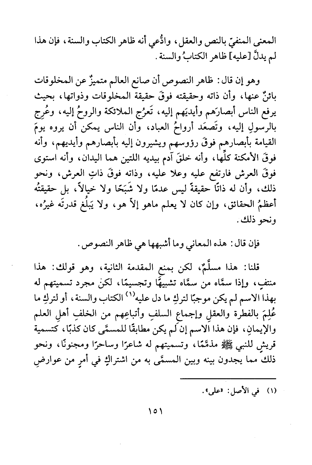 المعنى المنفي بالنص والعقل، وادعي أنه ظاهر الكتاب والسنة، فإن هذا