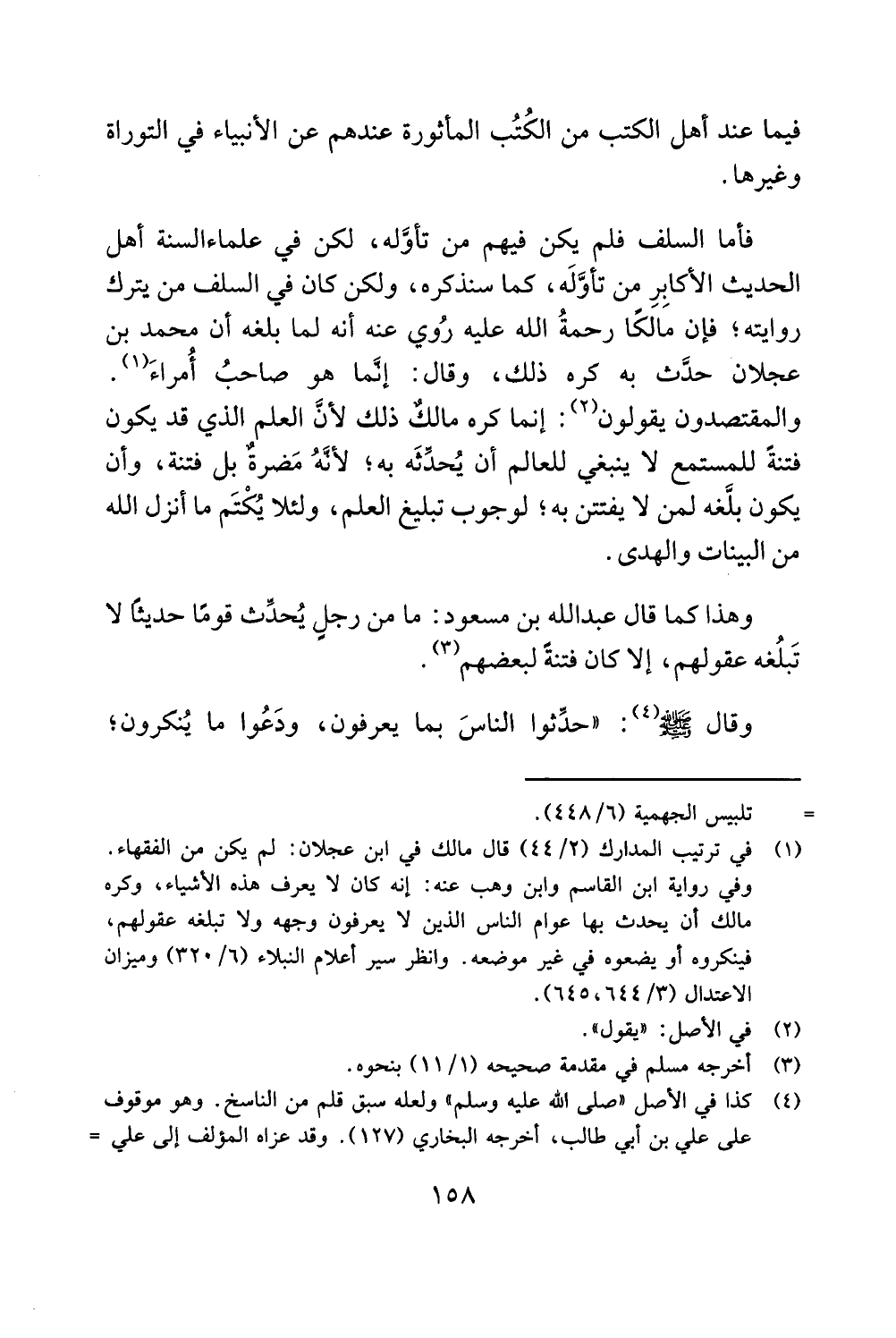 مالك أن يحدث بها عو 1 م الناس الذين لا يعرفون وجهه ولا تبلغه عقولهم،