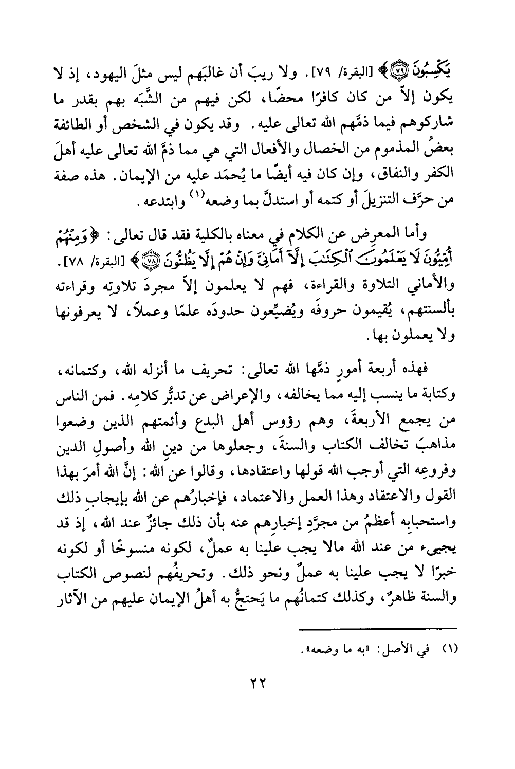 فهذه أربعة أمور ذمها الله تعالى: تحريف ما أنزله الله، وكتمانه،