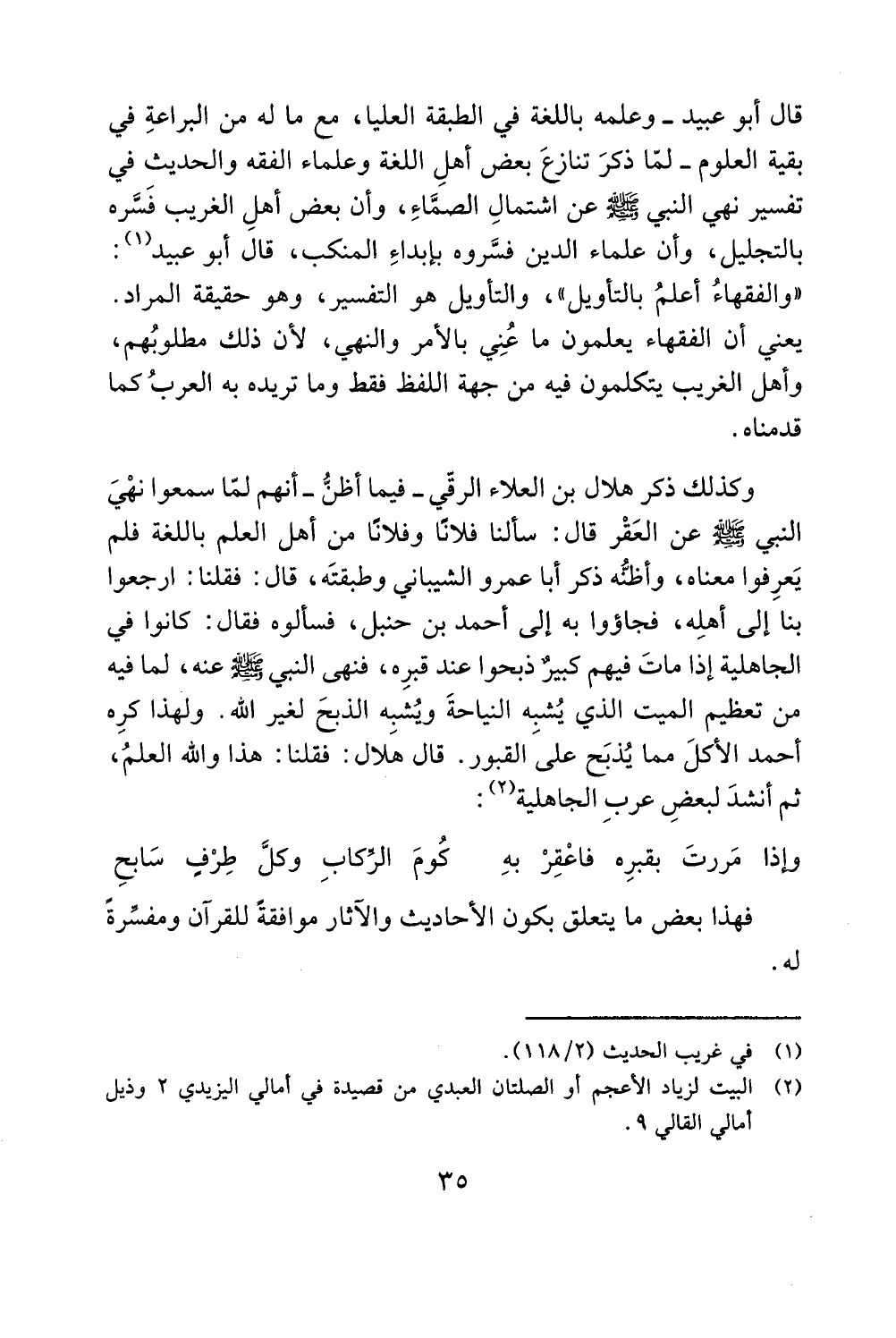 قال أبو عبيد -وعلمه باللغة في الطبقة العليا، مع ما له من البراعة في