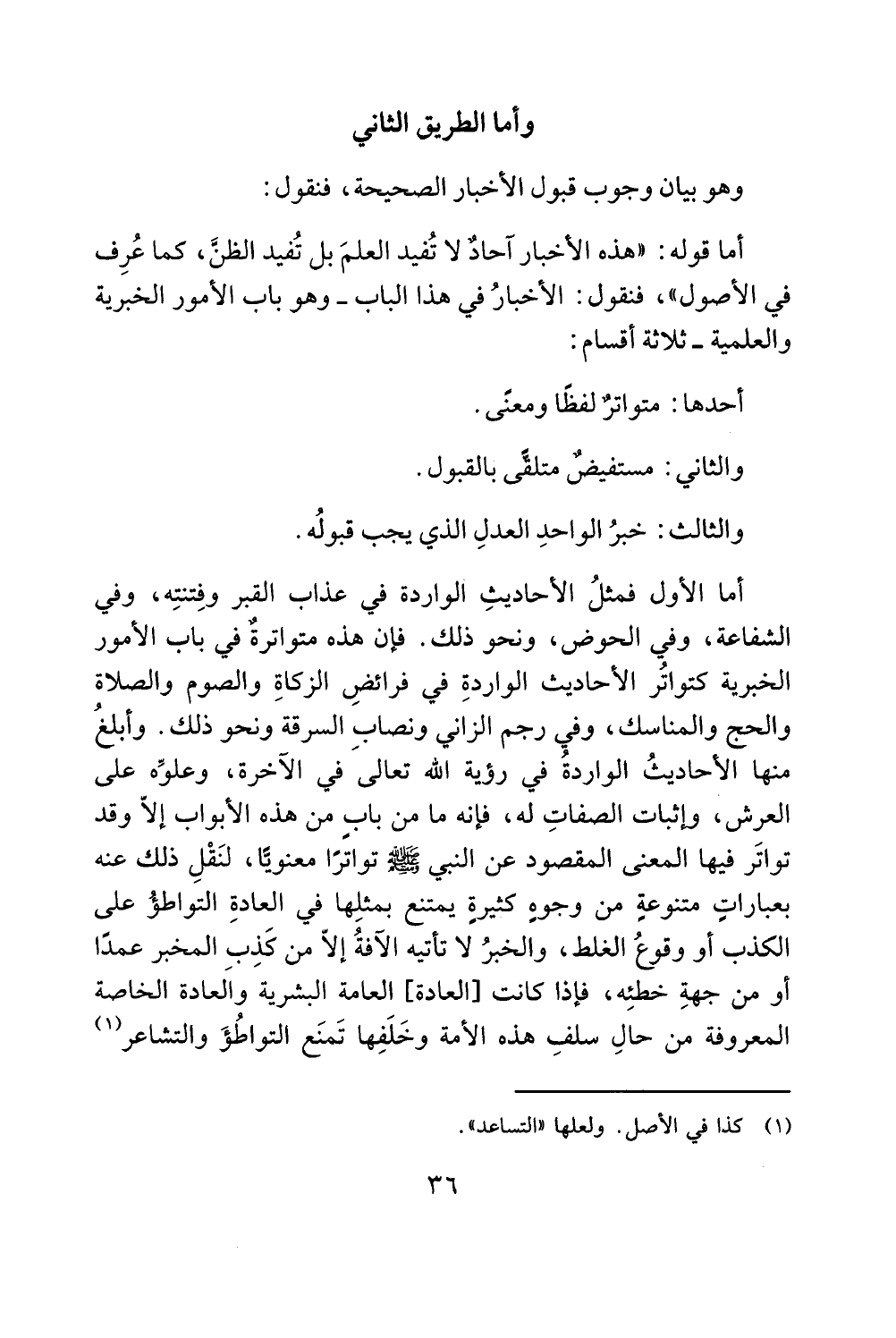 الشفاعة، وفي الحوض، ونحو ذلك. فان هذه متواترة في باب الامور